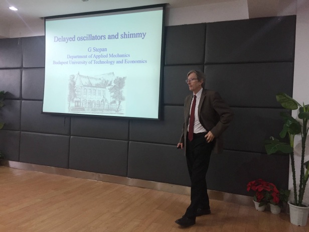 2016年5月18日下午4:00,在机械工程学院南高厅,应机械工程学院陈南教授邀请,Gabor Stepan教授作了题为“Delayed oscillators and wheel shimmy”的学术报告。