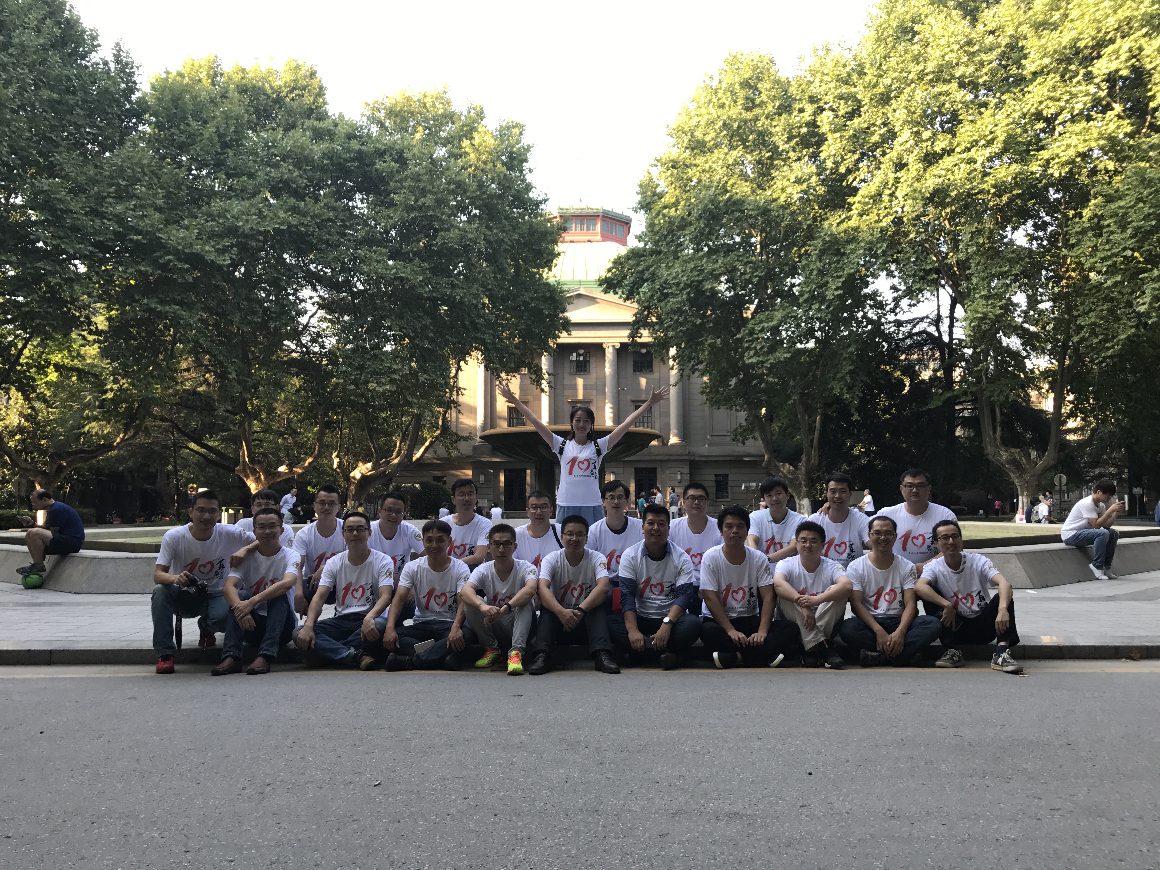 2017年9月17日,原020035班校友一行17人回母校庆祝毕业十周年。同学们一起漫步于六朝松下,大礼堂前,九龙湖畔,一 起回忆当初,共叙友情。学院校友会付瑜老师和胡涛老师代表学院热情接待了各位校友。