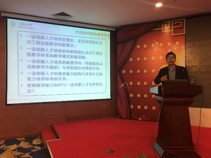 首先,东南大学副校长黄大卫做动员讲话,强调在历史悠久的机械学院更加需要明确人才培养目标,大力加强师资队伍建设。同时,鼓励全院上下提高参与教育思想大讨论的热情,积极参与各种形式的讨论活动。