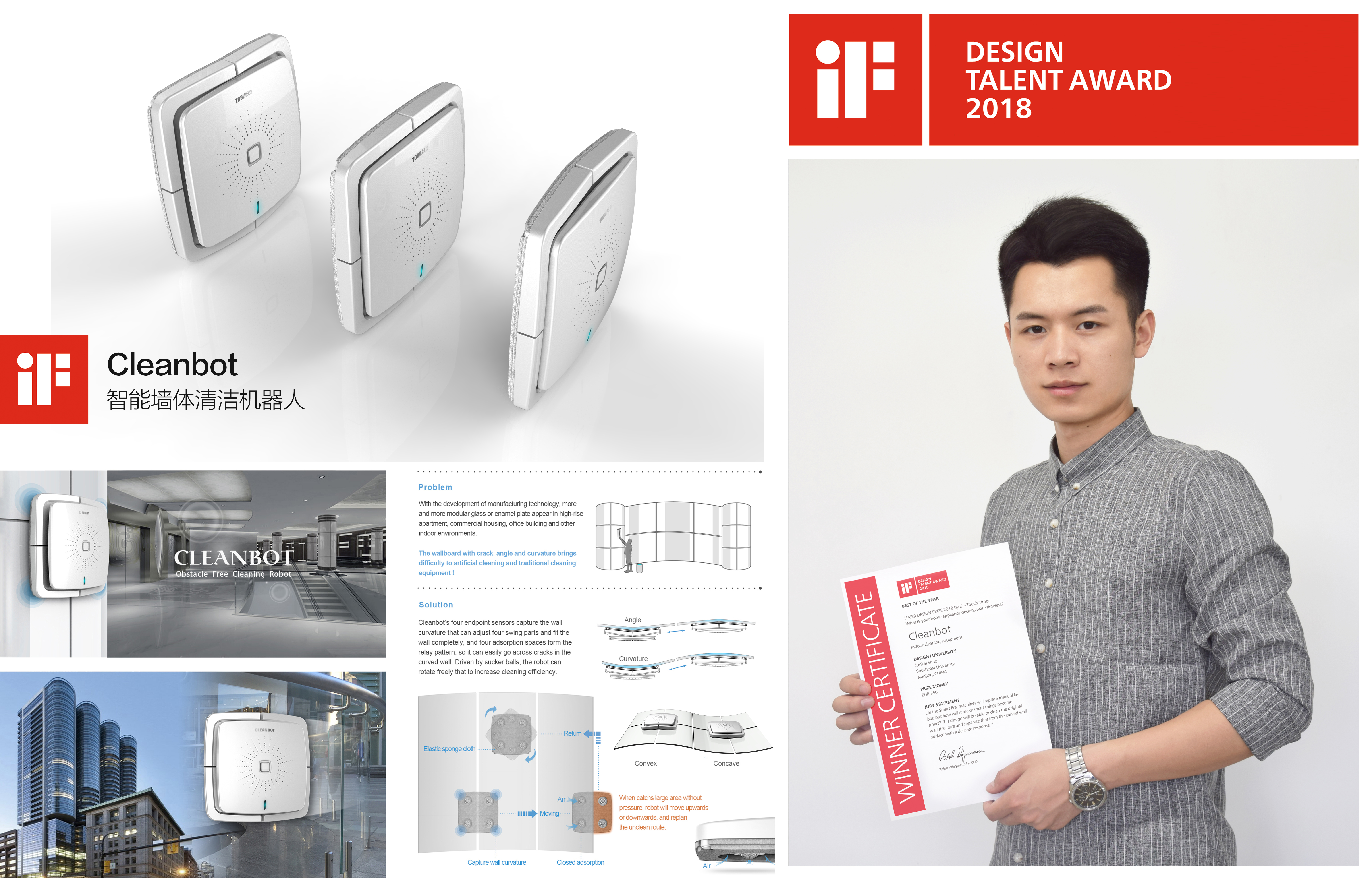 近日,全球设计界备受瞩目的iF DESIGN TALENT AWARD 2018设计大奖揭晓,由星空网官方站入口17级博士生邵俊凯设计、薛澄岐教授指导的作品“Cleanbot”,从全球50多个参赛国家,五千多件参赛作品中脱颖而出,历经60多位国际专家三轮评审,最终斩获“2018 iF设计新秀奖”。iF设计奖是设计界影响力最广、认知度最高的奖项,拥有设计界“奥斯卡奖”之美誉。