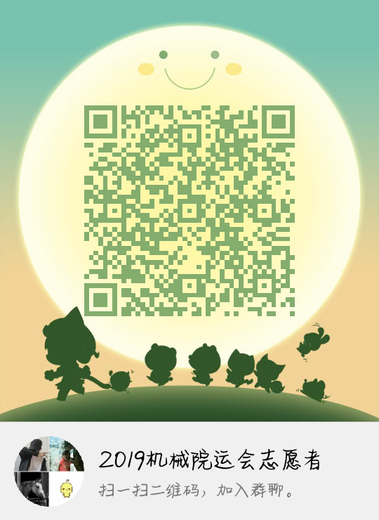 2019年机械工程学院运动会将于11月10日在桃园体育场进行,现面向学院所有在籍在校的本科生、研究生招募志愿者40余名,主要工作为检录、计时、登记成绩、维持现场秩序等,请有意向的同学扫描下方的二维码进行报名。