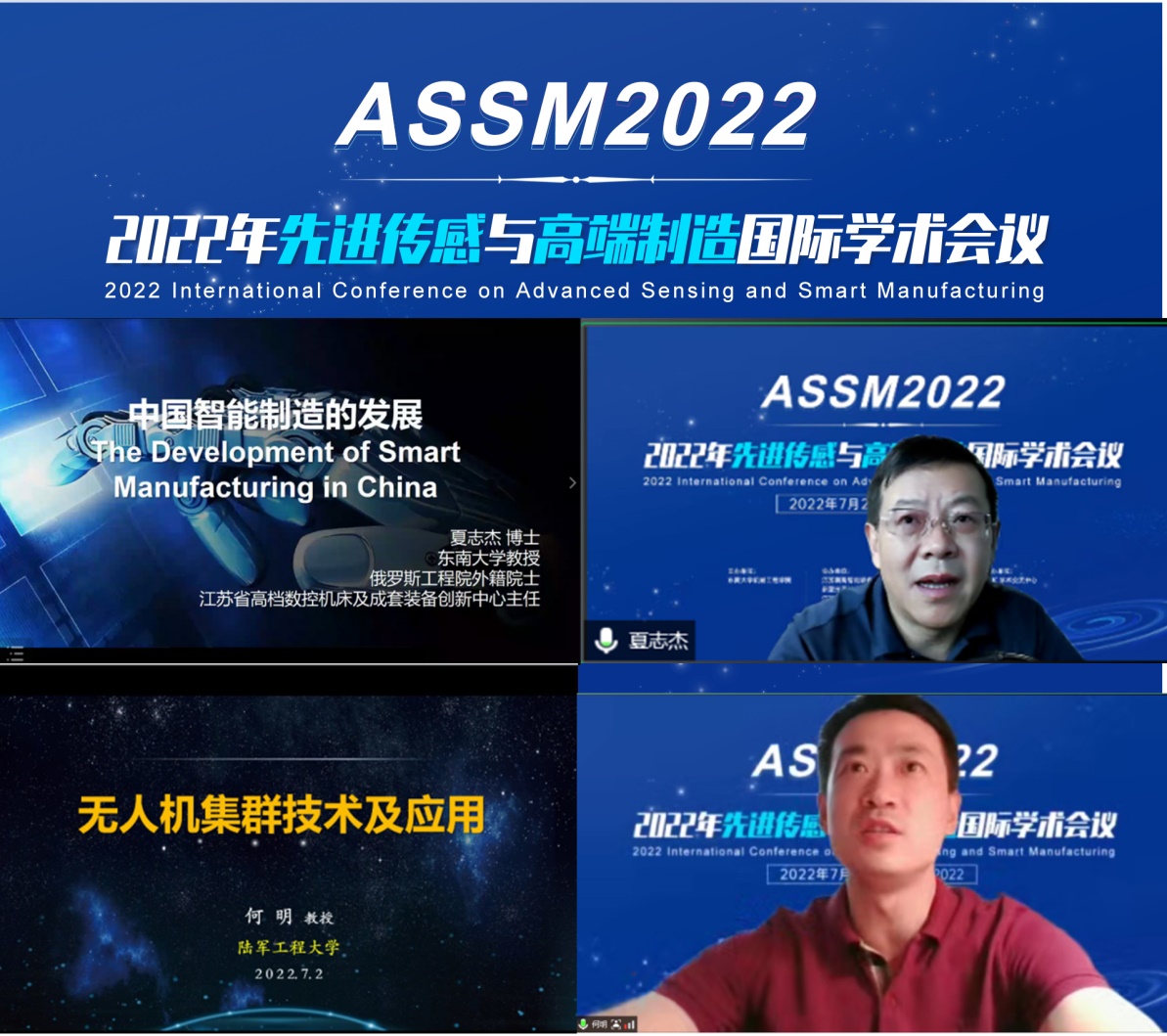 “先进传感与高端制造国际学术会议(ASSM 2022)”于2022年7月2日在南京召开(线上)。本次会议由星空网官方站入口主办,江苏省高档数控机床及成套装备创新中心、新型光源技术及装备教育部工程研究中心、江苏省微纳生物医疗器械设计与制造重点实验室、江苏省空天机械装备工程研究中心、安徽理工大学、河海大学、合肥工业大学等协办。