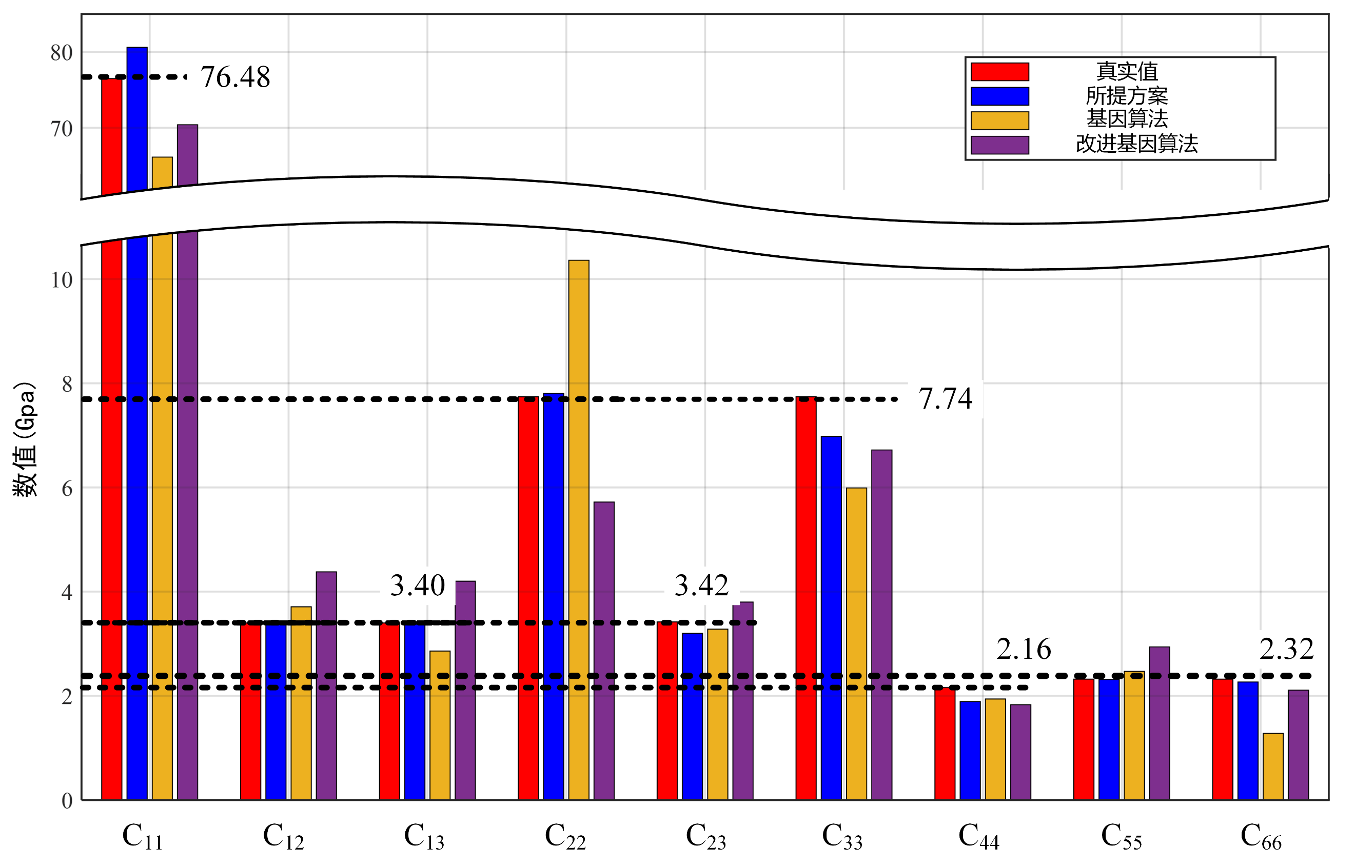 本方法仅使用了3个微型换能器激励和检测导波,它能方便、快捷的监测工程结构力学性能变化。9个弹性模量除C33C44的检测误差为9.8%12.5%外,其余检测误差均小于6.5%,表明该方法具有较高的精度。此外,整个弹性模量表征过程仅需0.003秒即可获得,因此,所提方法非常适合于复合材料力学性能的在线表征。