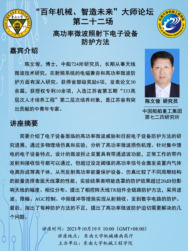 讲座地点: 东南大学机械楼南高厅