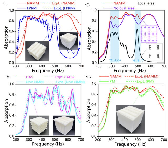 本研究对比了Fabry–Pérot共振超表面与NAMM的吸声效果,展示了传统Fabry–Pérot共振通道和负泊松比双箭头骨架与多孔介质构成的非局域区域对吸声效果贡献,并对其展开了理论分析与实验验证。