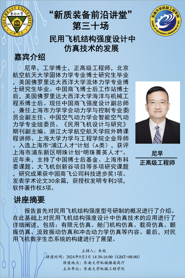 讲座地点:东南大学机械楼南高厅