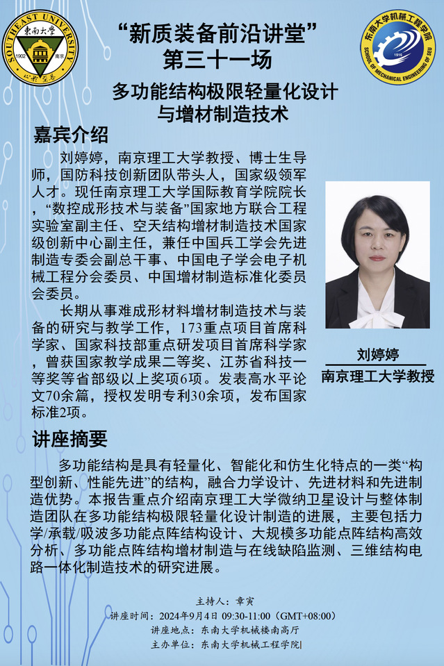 “新质装备前沿讲堂” 第三十一场:刘婷婷教授——多功能结构极限轻量化设计与增材制造技术