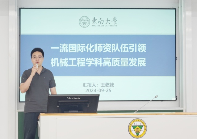 王乾乾副院长以“一流国际化师资队伍引领,机械工程学科高质量发展”为主题进行工作汇报,从师资队伍建设常态化、国际战略发展制度化、学术交流活动品牌化三方面进行工作规划。
