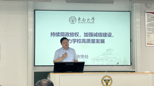 会议期间,财务处处长张晓兵开展政策宣贯,从政策调整的背景与思路、政策调整的主要内容、加强监管的措施三方面进行介绍,强调将持续简政放权,加强诚信建设,助力学校高质量发展。