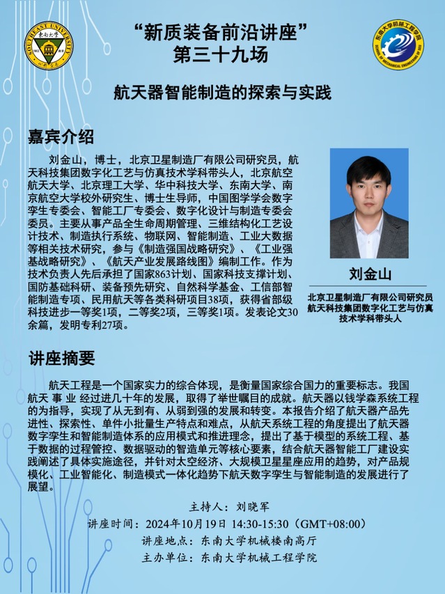 讲座地点:东南大学机械楼南高厅