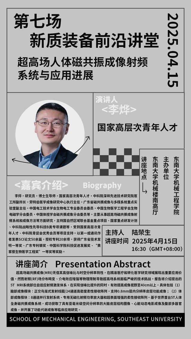 超高场磁共振成像(MRI)凭借其高信噪比与时空分辨率特性,在精准医疗和转化医学研究领域展现出重要应用价值。然而射频(RF)场分布畸变、介电效应增强等物理限制导致超高场系统面临严峻的技术挑战。报告将介绍提出的5T MRI系统部位自适应射频激发体系,在实现信噪比提升的同时,有效提高成像视野至40cm以上。具体包括(1)脑部成像模块:正交鸟笼式发射线圈/24通道高密度柔性接收阵列,支持0.8mm层内分辨率皮层功能成像;(2)体部成像模块:8通道并行发射系统、专用无磁化射频功率放大器和超表面增强的柔性接收阵列。基于世界首台5T人体全身磁共振成像系统,成功获取了具有亚毫米级空间分辨率的大脑皮层结构图像、心脏动态电影成像及腹部多器官成像,并开展了功能代谢成像等临床应用研究。