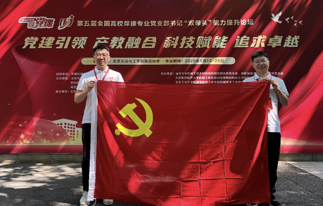 2025年5月23至25日,第五届全国高校焊接专业党支部书记“双带头”能力提升论坛在北京石油化工学院举行。我院机械制造系党支部刘小超老师、机器人系党支部书记李永哲老师受邀参会交流。
