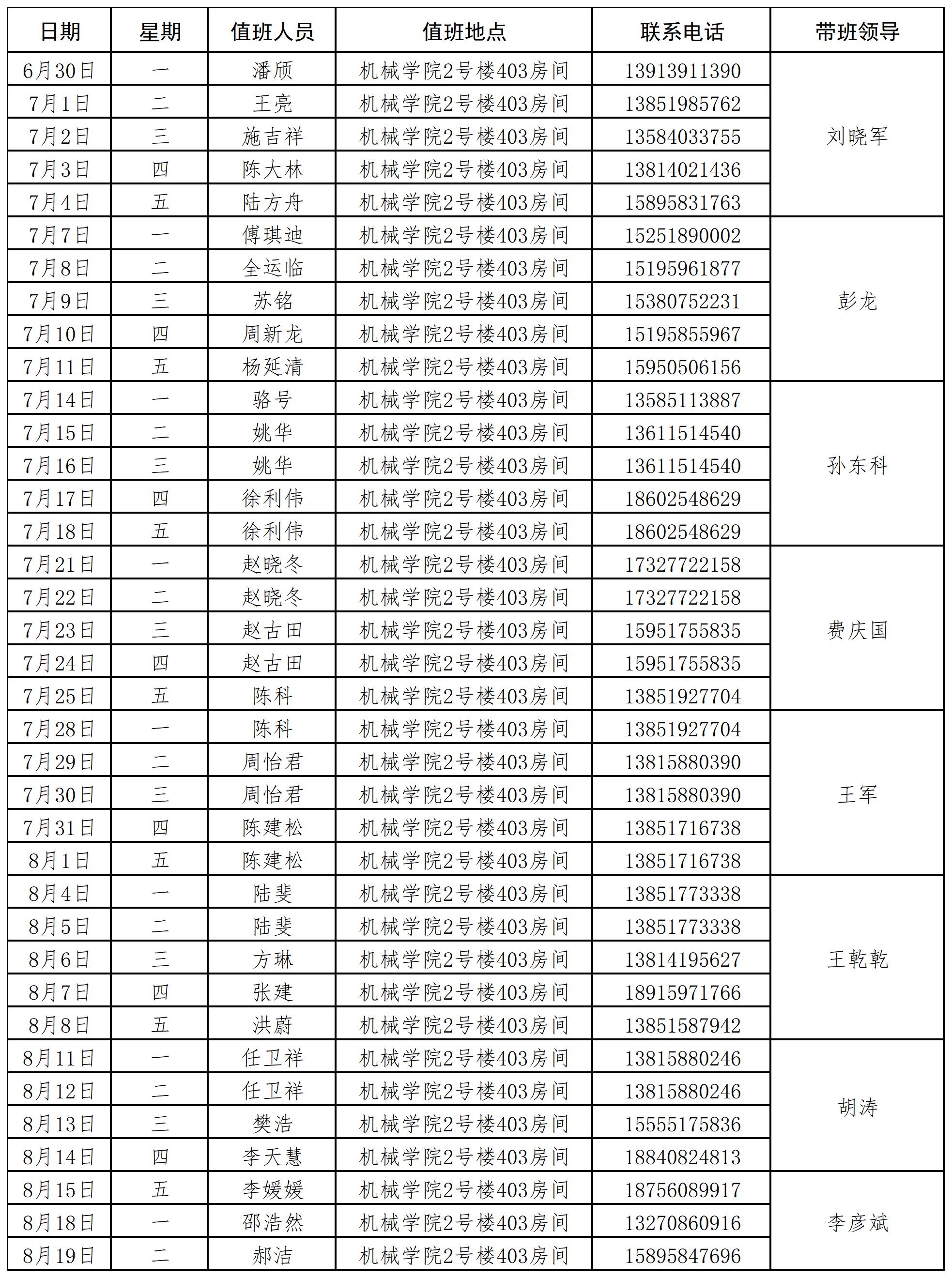 ➢ 值班联系人及电话: