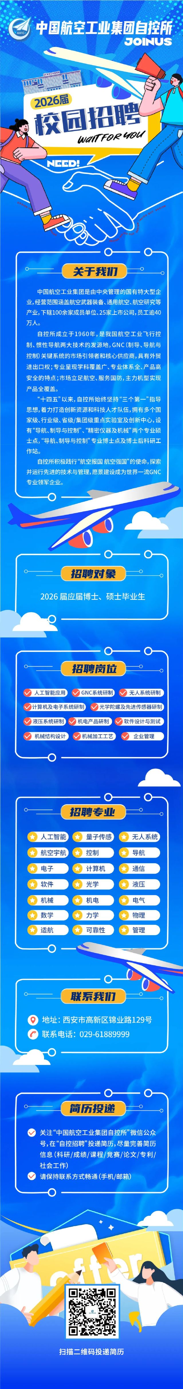 招聘 | 中国航空工业集团自控所2026 届校园招聘公告