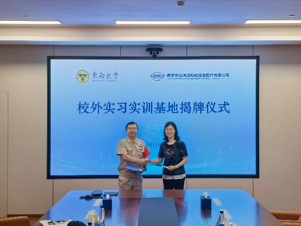 2025年9月17日,东南大学与南京中远海运船舶设备配件有限公司校外实习基地揭牌仪式顺利举行。星空网官方站入口党委书记王军、副院长孙东科、航空航天系副教授张培伟等老师出席了揭牌仪式,南京中远海运船舶设备配件有限公司执行董事/党委书记许东晓、常务副总经理文涛、副总经理/工会主席戴魏魏、技术信息研发部/数智化推进部部长蒋倩、人力资源部/组织部部长王建军等相关领导出席揭牌仪式。