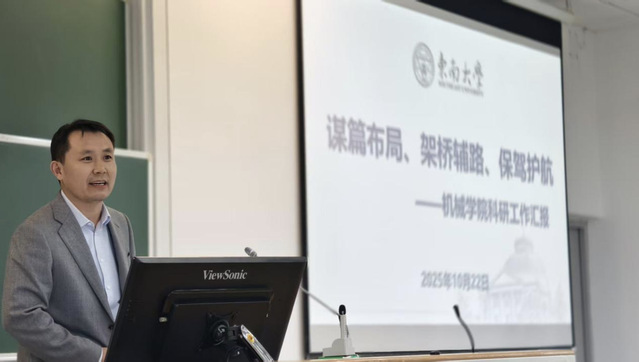随后,费庆国院长作工作报告。他首先回顾了“十四五”期间学院的发展成绩:学科建设持续推进、师资队伍不断优化、人才培养质量稳步提升、科学研究成果丰硕,各项事业均取得跨越式发展。面向未来,费院长详细介绍了学院“十五五”发展规划,明确要立足“国内一流前列、世界一流行列”的发展定位,号召全体教职工凝心聚力,共同谱写机械工程学院高质量发展的新篇章。