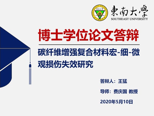 2020年5月10日上午,研究所王猛和陈强两位同学进行了博士学位论文的线上答辩,经过四个半小时的汇报及问答环节,两位同学获得了答辩委员会一致同意并顺利通过博士学位论文答辩。答辩委员会主席为王立峰教授(南京航空航天大学),答辩委员会其他成员为:谭志勇研究员(中国航天科技集团公司第一研究院)、韩晓林教授(东南大学)、靳慧教授(东南大学)及孙东科教授(东南大学)。