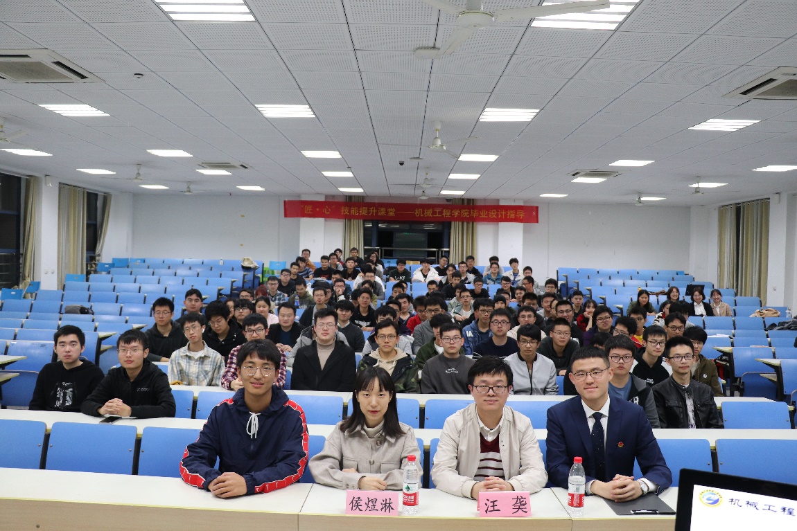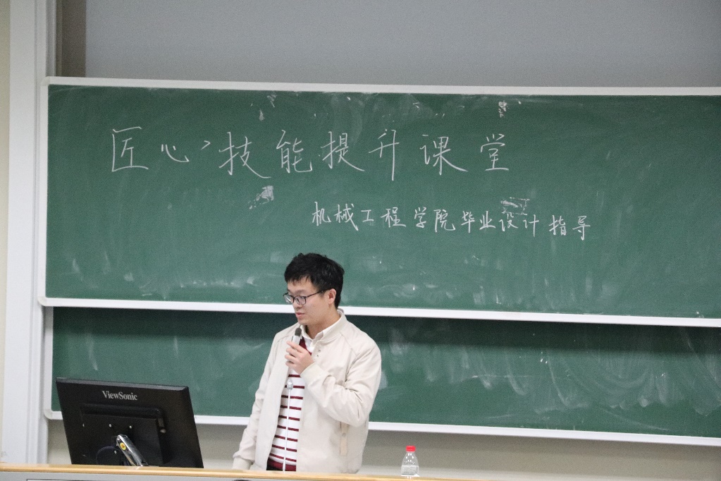为帮助机械工程学院17级学生梳理毕业设计进程,保证学生能够高质量地完成毕业设计论文,1117日晚18:30,机械工程学院开展了“匠心”能力提升课堂毕业设计论文指导与分享活动,围绕当前毕业生最关心的毕设论文相关问题进行针对性指导、分享与解答。机械工程学院18级博士生汪䶮学长、机械工程学院团委副书记、17级本科生辅导员侯煜淋老师出席本次活动。本次活动由机械工程学院19级本科生张速恒主持。