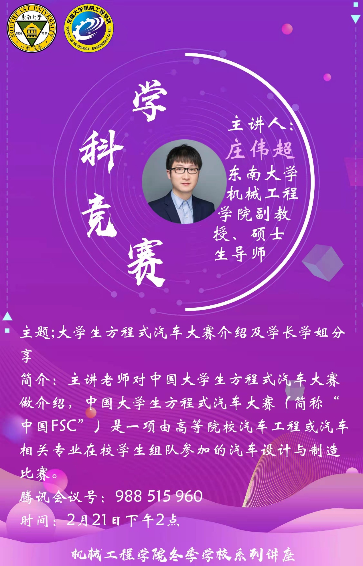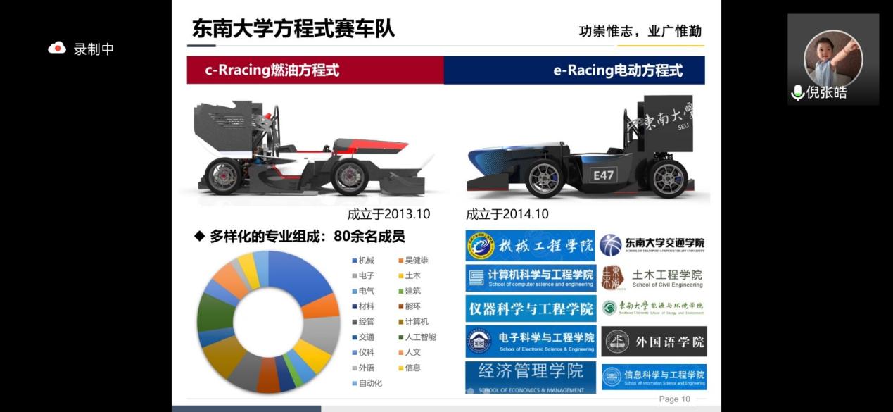 2022221日,东南大学方程式赛车队的指导老师和成员们向我们介绍了赛车队的具体工作。首先发言的是东南大学方程式赛车队的队长倪张皓同学。倪张皓同学先对东南大学方程式赛车队以及中国大学生方程式汽车大赛进行了简单的介绍,随后详细说明了赛车队的组成形式。