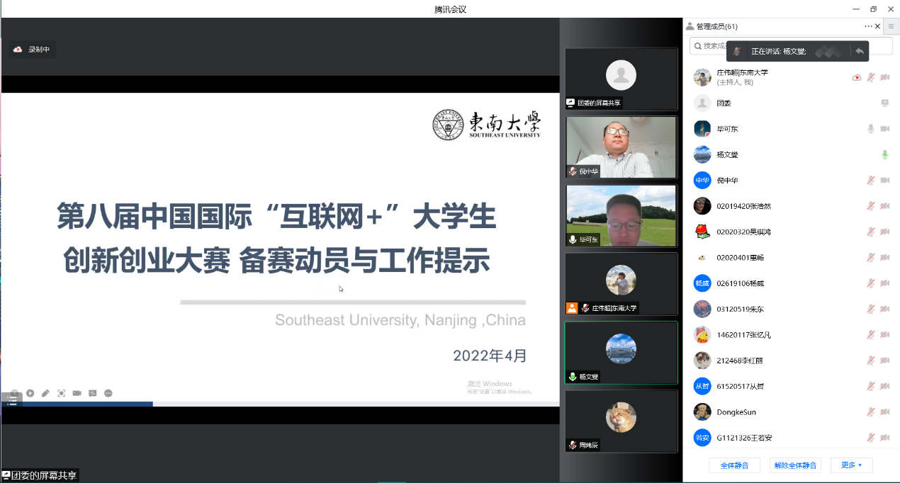为激励全院师生积极参与中国国际“互联网+”大学生创新创业大赛,推动“以赛促学”、“以赛促教”、“以赛促创”,提升参赛项目综合质量,机械工程学院于417日上午在线上召开了“互联网+”大学生创新创业大赛宣讲会。会议邀请了校教务处处长殷国栋和校团委副书记兼党委研工部副部长、党委学工部副部长杨文燮对“互联网+”大赛进行了备赛解析和经验分享,学院领导和师生参加宣讲会。