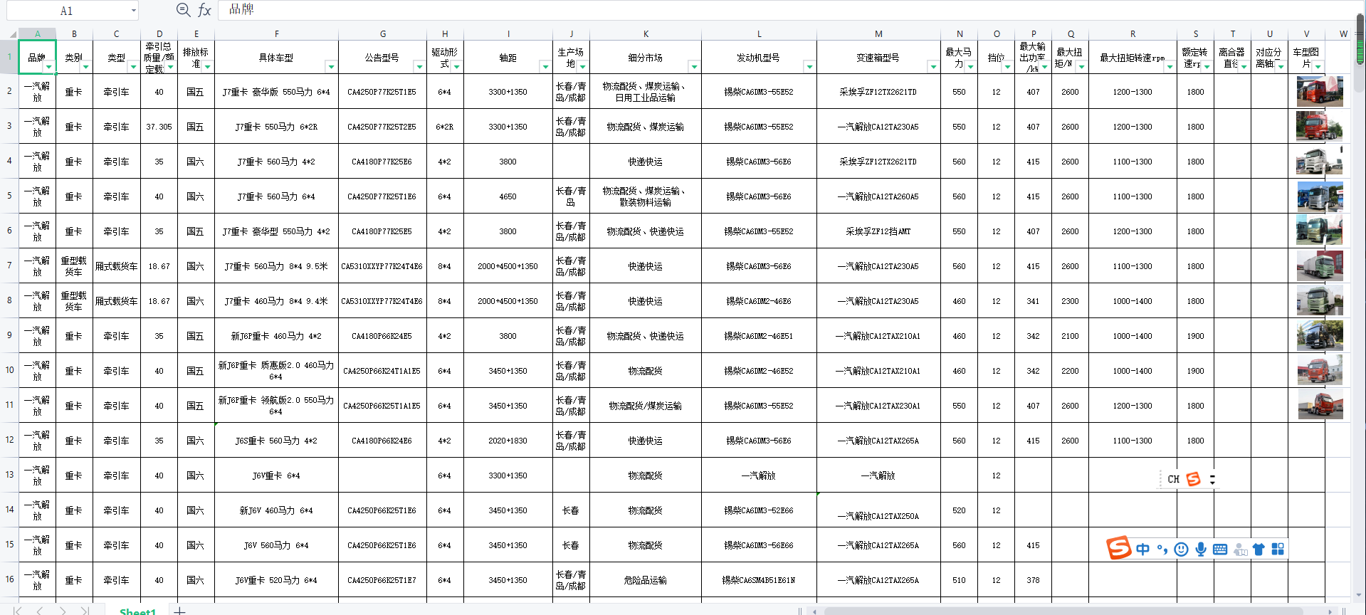 项目成果:我组通过在卡车之家网站上对于国内外多品牌商用车动力总成分析对比,整理各品牌AMT手自一体变速箱商用车总结于一表中,其包含重卡、中卡、轻卡、载货车及特种车辆在内总计四百余种车型信息,其中参数包括类别、类型、牵引总质量、排放标准、具体车型、公告型号、发动机型号、变速箱型号在内的十余项参数,对于南京轴承有限公司开辟AMT手自一体商用车离合器分离轴承市场有先行意义,为进一步市场调研奠定了基础。