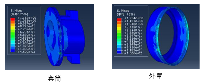项目成果:现有的86CL6395F0分离轴承为拉式分离轴承,其零部件主要包括内外圈、滚子、保持架、外罩和套筒。为探究出在轴向拉力作用下,该型号轴承零部件各部位受力情况以及断裂位置,我们在solidworks软件中对其主要零部件进行了建模与简易化处理,并在abaqus仿真软件中对各零部件进行配合定位以及有限元分析。