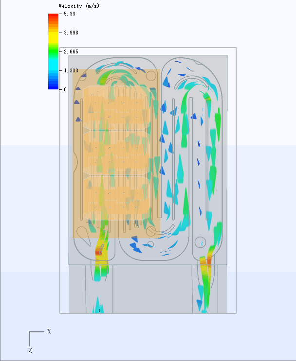 根据现有的东风易捷特项目电机控制器散热水道,用两款不同的散热仿真软件对散热水道进行热仿真分析,根据实测结果对仿真的准确性进行评估,给出评判性结论及水道建议,形成分析报告。