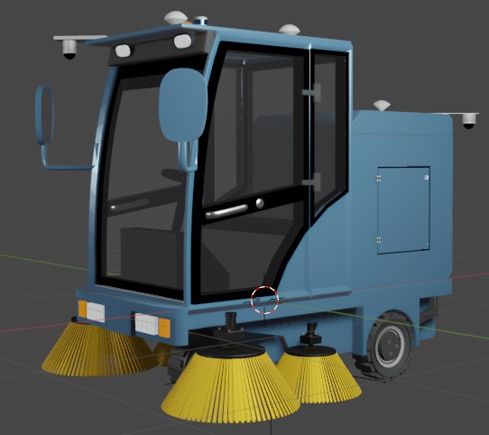 项目简介:先进行三维blender软件的快速培训,使学生在短时间内较熟练地掌握3D建模中点、线、面等基本要素的生成融合方法。在此基础上,基于blender软件对企业自研的扫地机器人大海牛号车辆进行模型绘制。