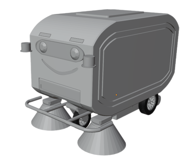 项目简介:先进行三维blender软件的快速培训,使学生在短时间内较熟练地掌握3D建模中点、线、面等基本要素的生成融合方法。在此基础上,基于blender软件对企业自研的扫地机器人小海牛号车辆进行模型绘制。