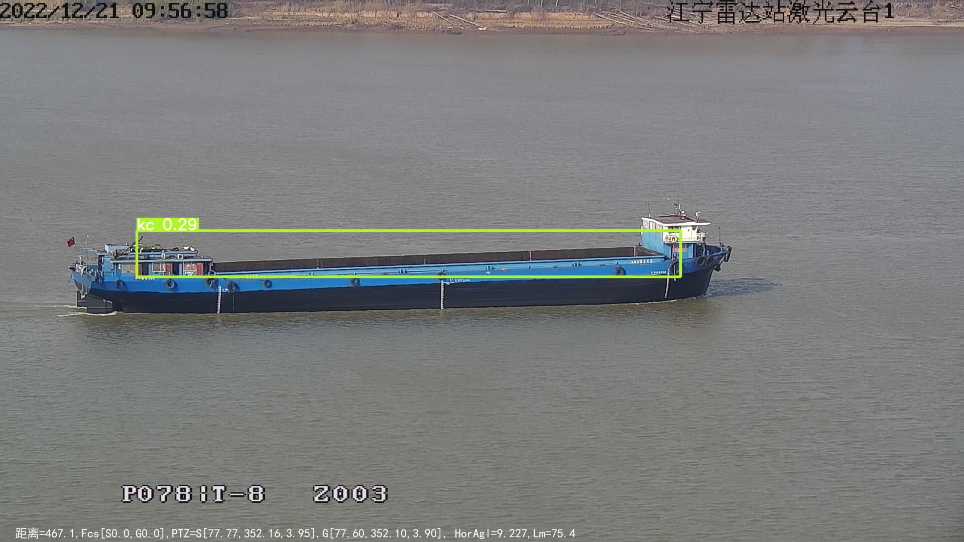 1.在相机拍摄的图像上确定甲板和船水分界线的像素距离,即干舷距离。小组先通过labelme标注为数900张的训练集,在用yolov5对训练集进行学习后在测试集里进行验证。之后得到一套对任意干舷标注的神经网络,从而得到了干舷的像素高度。之后结合已知的相机数据(相机和船只的距离、相机的俯仰角等)代入已知的函数中得到干舷的实际高度。最后用已知的船只总高减去干舷实际高度可以得到船只吃水深度,从而判断船只是否超载。